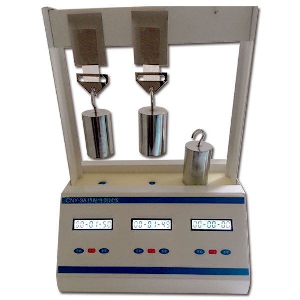 测试原理:把贴有试样的试验板垂直吊挂在试验架上,下端挂规定重量的砝码,用一定时间后试样粘脱的位移量或试样完全脱离所需的时间来测定胶粘带抵抗拉脱的能力。